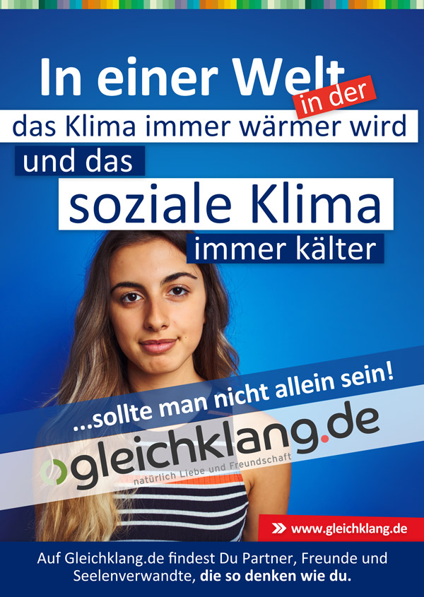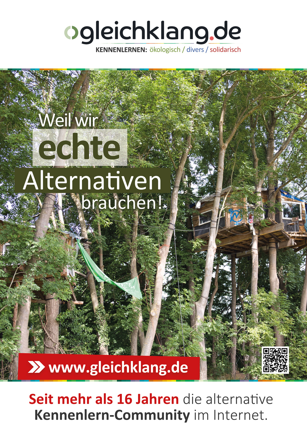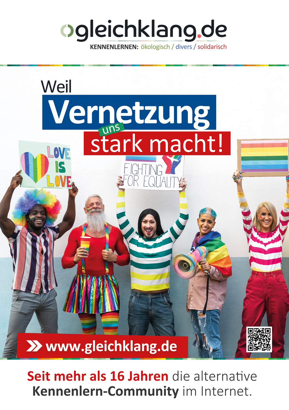 Die Gleichklang-Community ist eine Mitglieder-Community und Kennenlern-Gemeinschaft von derzeit etwas über 20.000 Mitgliedern, die nach Partnerschaft, Freundschaft oder Reisepartnern suchen und denen Ökologie, Mitgefühl, Solidarität und Mitmenschlichkeit am Herzen liegen.