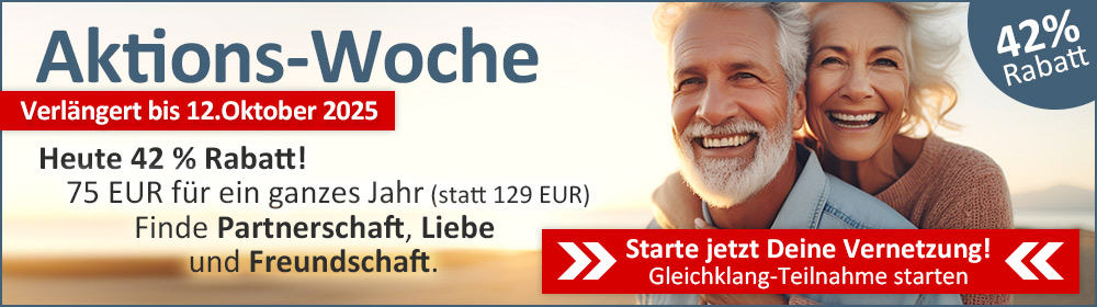 Gleichklang bietet eine psychologisch fundierte Partnervermittlung für alle Generationen. Während die Altersgruppe 30-60 die Mehrheit der Mitglieder bei Gleichklang stellt, folgen unmittelbar danach die Senioren und Seniorinnen. Selbst ein Mitglied von über 90 Jahren nimmt an der Partnersuche bei Gleichklang teil. Das Gleichklang-PRINZIP einer Partnervermittlung nach Passung der Partnervorstellungen und Lebensstile kommt gerade auch Senioren und Seniorinnen besonders entgegen, weil im Seniorenalter der Lebensstil und die Lebensgrundlagen bereits in erhöhtem Ausmaß festgelegt sind. Gerade im Seniorenalter ist der erfolgreiche Beginn einer neuen Partnerschaft in besonders hohem Ausmaß an eine echte Passung der Lebensstile gebunden. Die hohe Seriösität der Gleichklang Partnervermittlung unterstützt Senior:innen daher besonder effektiv. Jedoch besteht auch in der jungen Generation von 18-30 oftmals das Bedürfnis nach eine kompetenten Unterstützung bei der Partnersuche, weshalb Gleichklang unter seinen Mitgliedern ebenfalls, wenn auch seltener, Mitglieder im frühen Erwachsenenalter aufweist. Gleichklang versteht sich als eine Partnervermittlung und Dating-Plattform für alle Generationen, wobei je nach Wünschen und Präferenzen der Mitglieder auch Partnerschaften zwischen Mitgliedern unterschiedlicher Altersklassen erfolgreich vermittelt werden.