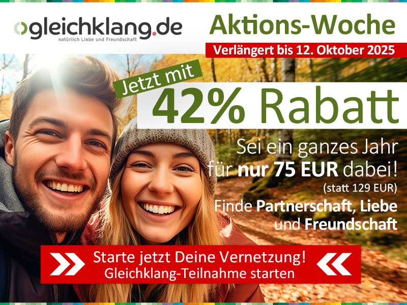 Als umweltbewusster und sozial denkender Mensch mit Offenheit für alternative Ideen und Toleranz für verschiedenartige Lebensarten haben Sie über das alternative Dating-System von Gleichklang die besten Chancen, die Partnerin oder den Partner für ein gemeinsames Leben, Partner und Partnerin (bisexuelle Suche) und wirkliche Freunde und Freundinnen zu finden.