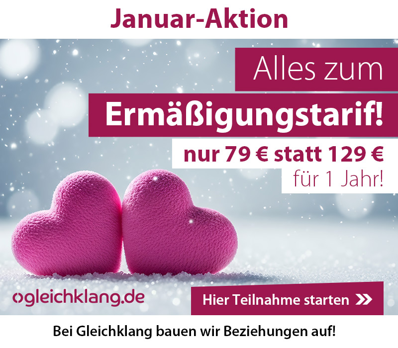 Sie können die FAQ lesen, die Optimierungen in Anspruch nehmen und das Lernprogramm durchführen „Wie verbessere ich meine Aussichten bei Gleichklang“. Gleichklang ist eine Online-Dating-Plattform, die nur sehr geringe Gebühren erhebt, ein vielfaches geringere Gebühren als die Mainstream-Dating-Plattformen. Wir bitten daher, sich nur an das Team zu wenden, wenn eine Lösung für ihr Problem in der FAQ oder den anderen Möglichkeiten nicht enthalten ist. Bitte senden Sie als Mitglied auch keine externe Email, sondern senden Sie eine Nachricht aus dem Teilnahmebereich heraus. So gelangt die Nachricht zum richtigen Ansprechpartner. Die Antwort werden Sie dann ebenfalls im Teilnehmerbereich finden. Wir bitten aber um etwas Geduld, es kann durchaus einige Tage dauern bis eine Antwort erfolgt. Wir erhalten viele Anfragen und können nicht auf jede sogleich zurück antworten.